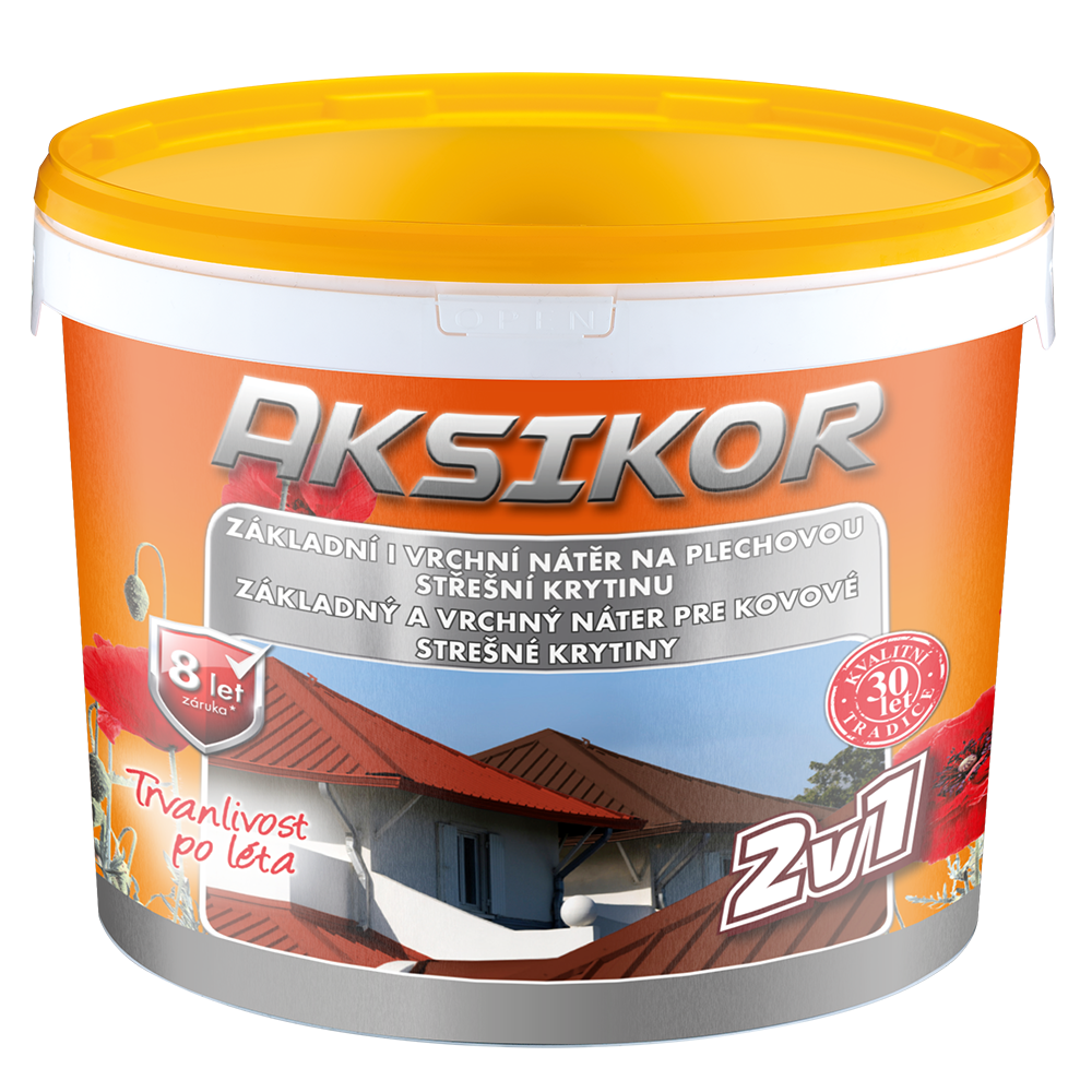 Po 24 hodinách nanášíme první vrstvu barvy - nátěr AKSIKOR (matný povrch) nebo AKSIKOR PREMIUM (mírný lesk). Druhá vrstva barvy může být aplikována po cca 2 hodinách. Povrch plnohodnotně zaschne po cca 3 dnech.